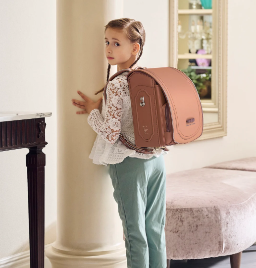 アイボリーを基調に、キャメルブラウンの縁取りが映える端正なデザイン。細部まで美しく仕立てた、上質感あふれるランドセルです。