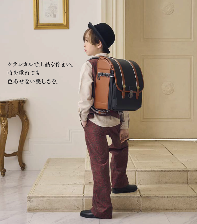 空間や光、スタイリングまで丁寧に設計されたビジュアルが、ランドセルそのものの佇まいを美しく引き立てるモデルビジュアル。