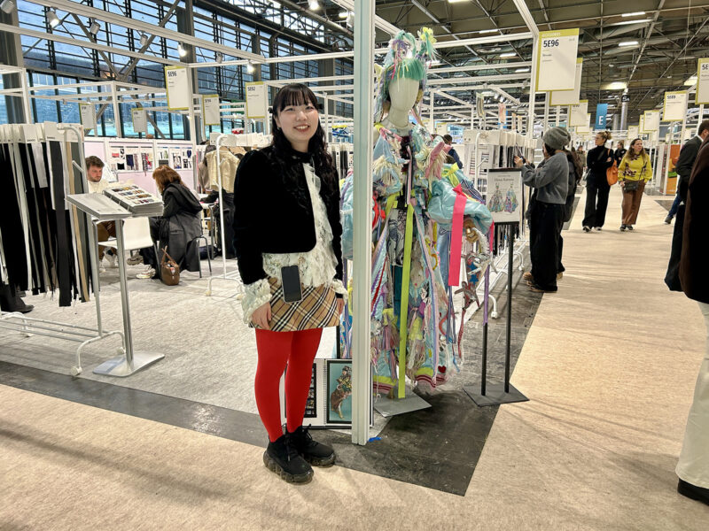 ↑2025年2月のプルミエール・ヴィジョンでの展示風景と学生デザイナー。