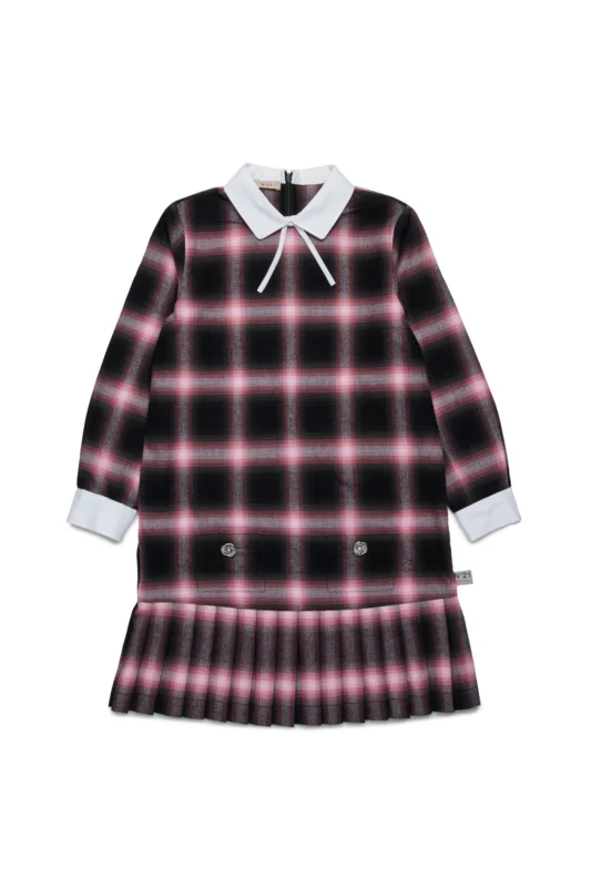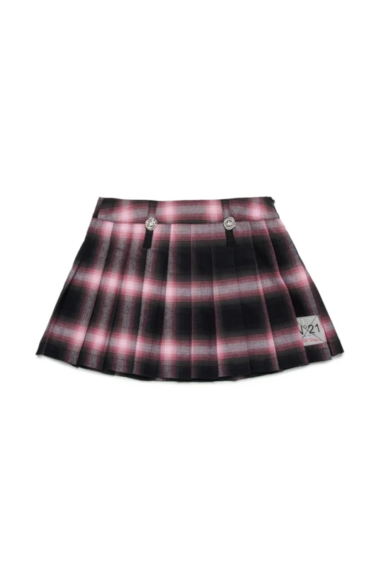 プリーツデザインのトラッドなシルエットに映えるピンクチェックのグラデーション。上品さの中にN°21らしいエッジさが光ります。