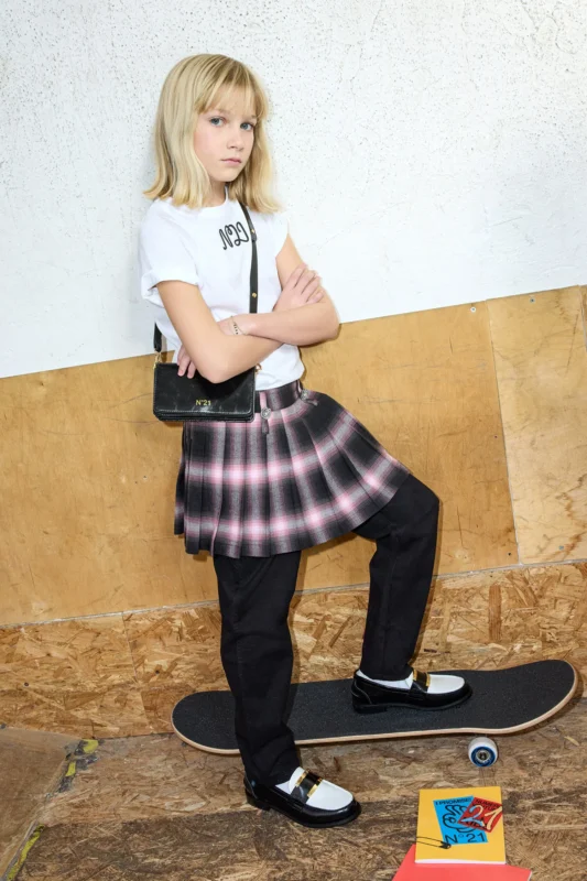 チェック柄、エッジを効かせたブラックアイテムなど、クラシックとモードが共存した「ヌメロヴェントゥーノ」の秋コレクション。トラディショナルなスタイルにストリートの感性をミックスした、今季らしいキッズファッションを楽しもう♪
