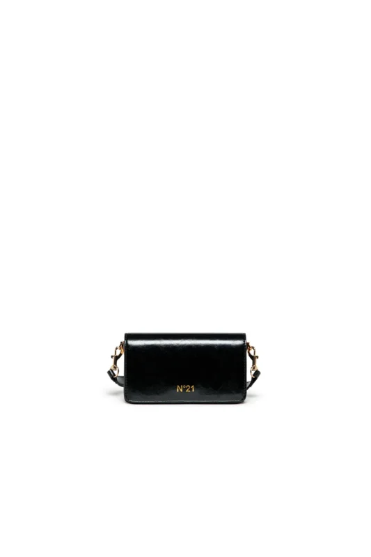 艶のあるブラックにゴールドのロゴを添えたショルダーバッグ。小ぶりながら存在感があり、どんなスタイルにも上品なアクセントをプラス。