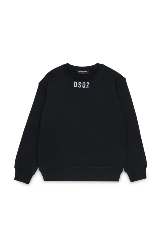 首元に小さなアクセントを効かせた、洗練さが引き立つブラックスウェット。どんなスタイリングにも自然になじむ万能な一枚。