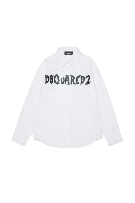 フロントの大胆な「DSQUARED2」ロゴが印象的なホワイトシャツ。1枚で着てモードに、レイヤードスタイルでストリート感も演出できる大活躍アイテム。
