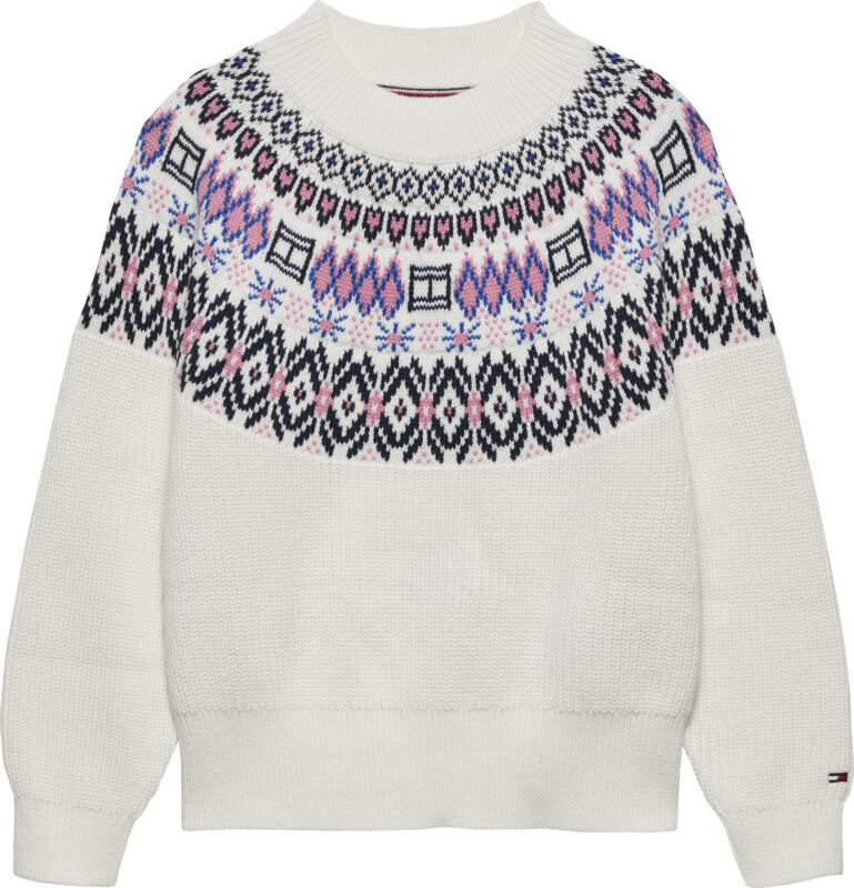 ハートやロゴをアレンジしたフェアアイル柄が丁寧に編み込まれたキュートなセーター。コットン素材のニットは、季節の変わり目からロングシーズン着回しできるのが魅力。