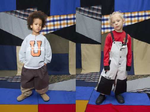 MYAR KIDSの主役は「マテリアル」。使用されるすべての生地はデッドストックから選ばれ、なかでもBRAVE KIDのアーカイブ素材をアップサイクルして制作。