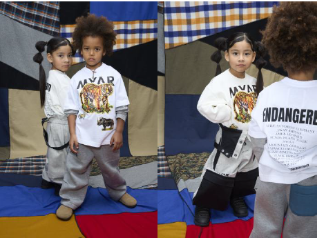 2025年秋冬コレクションのテーマは「Endangered Species(絶滅危惧種)」。子どもたちの世代が出会う前に失われてしまうかもしれない動物たちにフォーカスし、Tシャツやスウェットには大きなアニマルグラフィックやパッチワークプリントをデザイン。バックスタイルにはメッセージ性のあるプリントがあしらわれています。使用されているのは、認証済みのバイオベース染料で、着る人にも地球にもやさしいアプローチが魅力的。