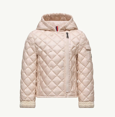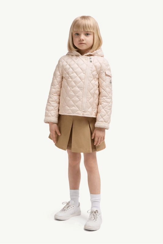 淡いピンクのキルティングが、やさしい表情を引き立てるフードジャケット。シンプルなシルエットながら、繊細なステッチや軽やかな着心地で、デイリーにも特別な日にも活躍します。