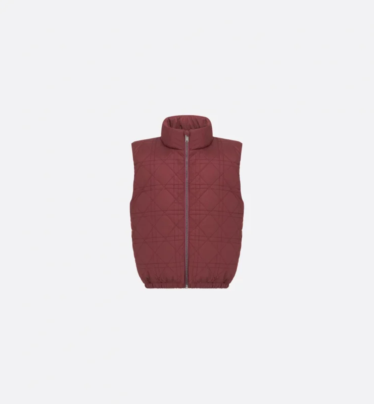 深みのあるバーガンディのキルティングベストは軽量ながら暖かく、シャツやニットとのレイヤードで季節感のある大人っぽいコーディネートが楽しめます。