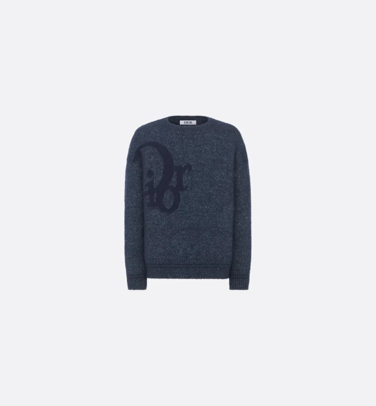 ロゴを同色で配したネイビーのニットは、カジュアルな着こなしにも品のある佇まいを保ち、冬のワードローブの主役として活躍します。