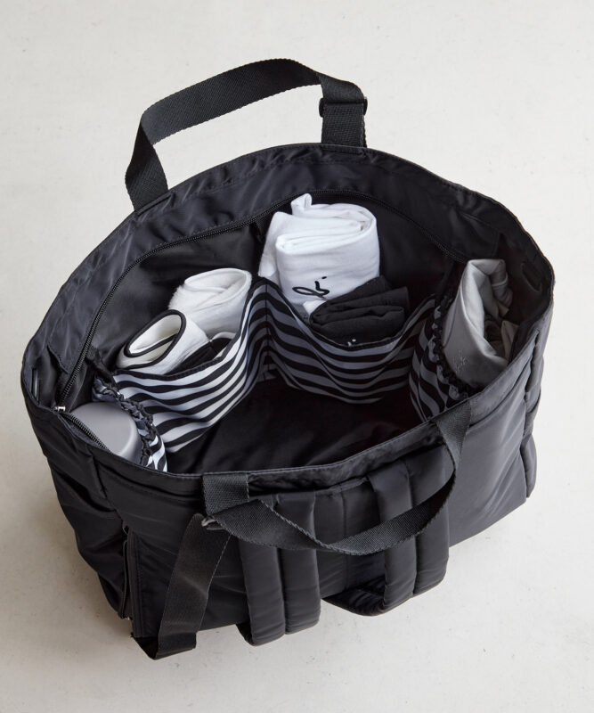 ママと赤ちゃん両方の荷物がたっぷり入る収納力と、大きく少し浅めな開口部による荷物の取り出しやすさも魅力。ペットボトル6本分の収納力がありながら、すぐに取り出したいタオルは外ポケット、着替えやおむつ、付属のおむつ替えシートは内側に収納できるような設計に。ドリンクホルダーが深く、長めのタンブラーが入るのもうれしい。