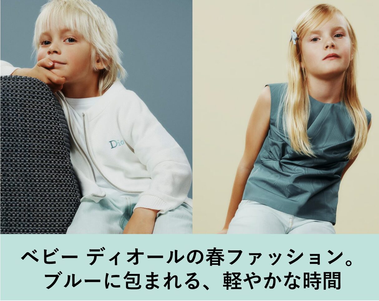 澄んだブルーを軸に、軽やかな素材感と端正なシルエットで描かれるベビー ディオール2026SSの春スタイル。やさしく溶け込むプリントや立体感のあるディテールが、子どもらしい無垢さと老舗メゾンならではの洗練を自然に引き立てます。日常にも特別な日にもなじむブルーのアイテムたちは、この春のワードローブに静かな存在感を添えてくれます。