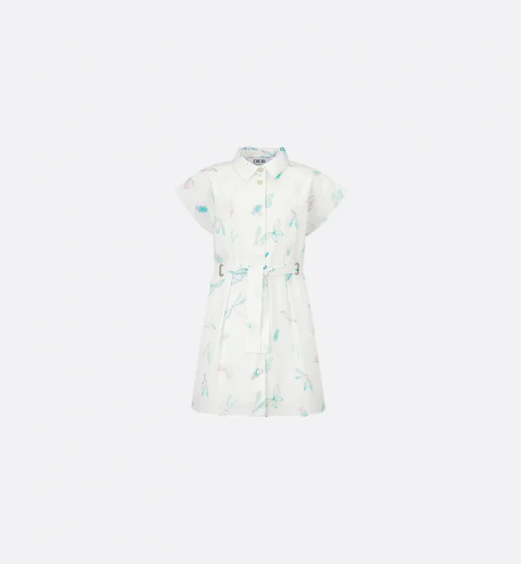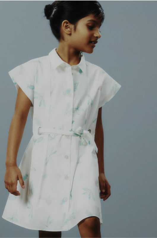 繊細なバタフライととんぼプリントが春らしい透明感。ウエストマークでシルエットにメリハリをつけ、それ一枚で上品な佇まいに。