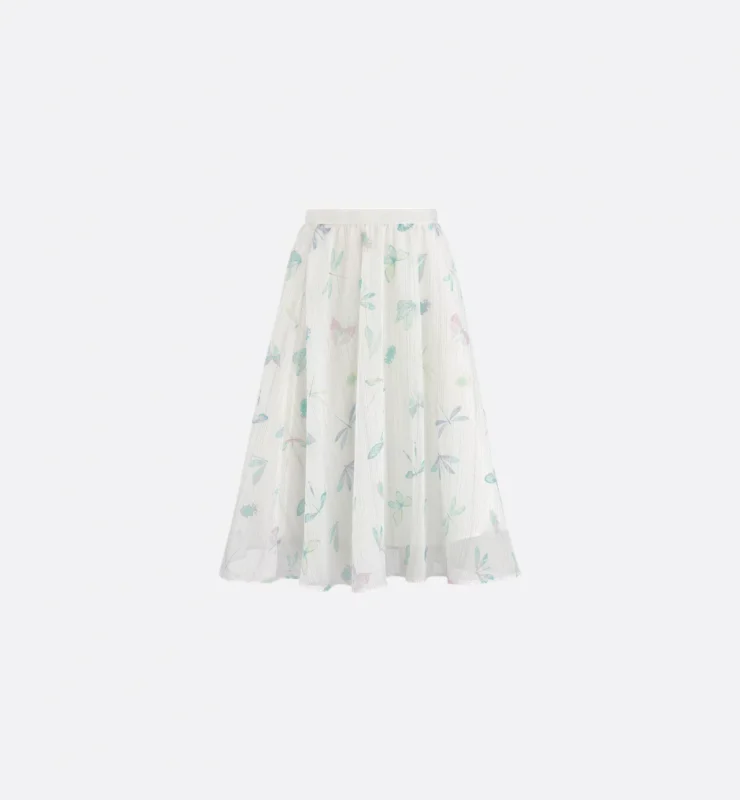 ふんわり広がるチュールに、華やかに軽やかさを引き立てるバタフライプリント。ロング丈が大人っぽく、トップス次第でカジュアルにもドレスアップにも活躍。
