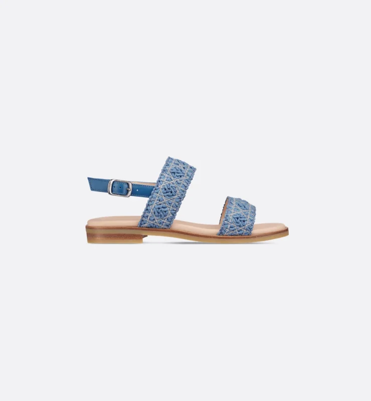 編み込みのテクスチャーが印象的なブルーサンダル。デイリーにもドレスアップにも寄り添う、春の名脇役。
