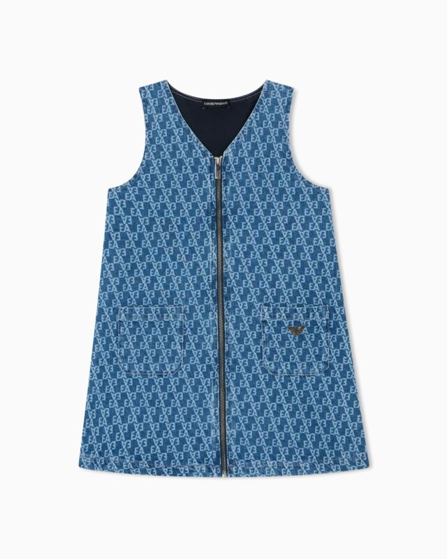 総柄ロゴでもデニムなら、こなれた印象に。ジップの開け加減で羽織アイテムとして、合わせるインナー次第ではカジュアルにもきれいめにも着回せる、春の主役ワンピース。