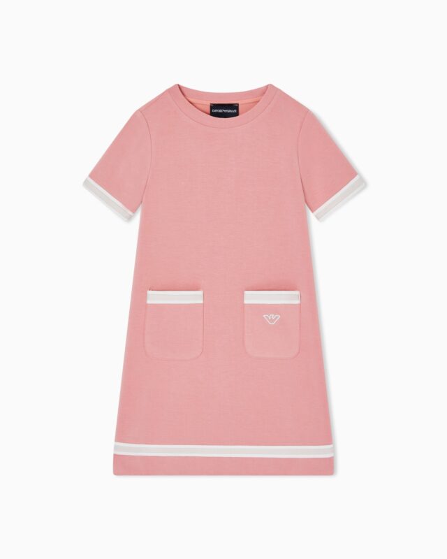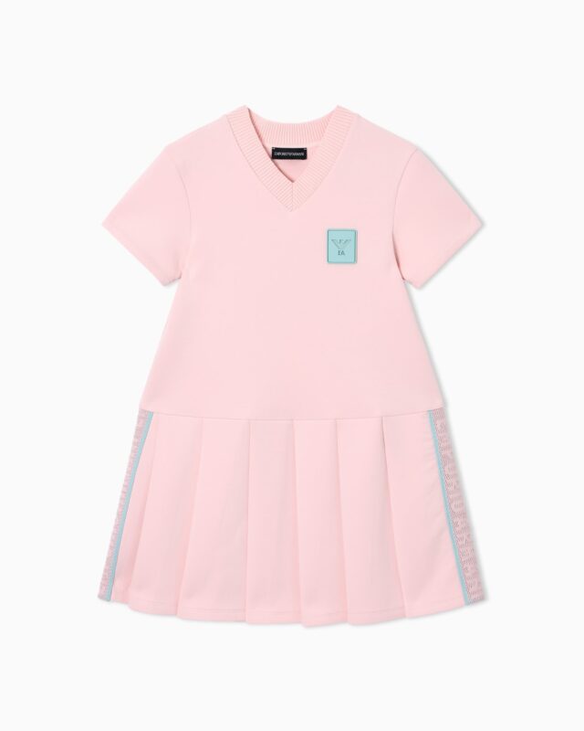 胸元ロゴとサイドラインがアクセント。スポーティブでアクティブな雰囲気も魅力的なワンピース。動くたびに揺れるシルエットがかわいい。