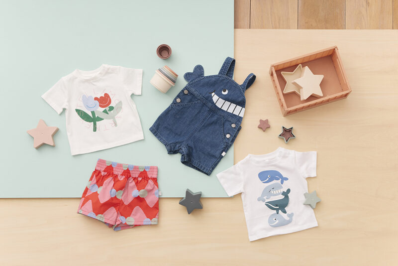ポップなくじらやチューリップのイラストがベビーの心をキャッチ。