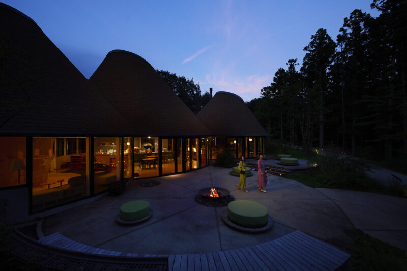 時の経過を空が知らせてくれる、森の中に佇む「POKO POKO」の夕暮れ