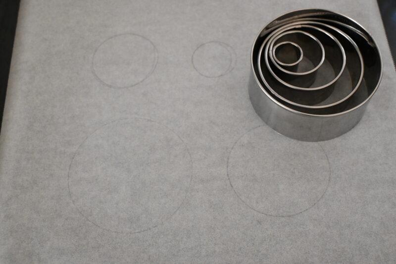オーブン用シートに、サインペンでセルクルの大きさを書き写す。