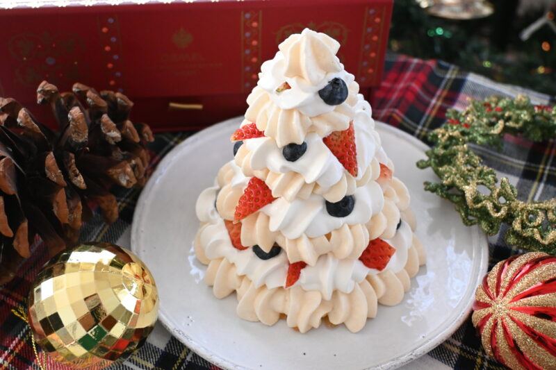 パブロバは、季節のフルーツと合わせたらいろんなシーズンでお楽しみいただけます。今回は、旬のいちごを使って華やかに、形はクリスマスツリーに見立ててご紹介しました。